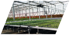 各類溫室加熱設備、自走式噴灌機、工業暖風機,植物生長架,專用育苗床,各類環境調控設備及溫室相關資材配件。